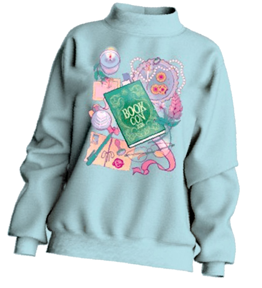 The illustration was featured in a range of products available in the official Book Con store. This included a limited edition collab with the brand Book Beau and their book sleeves, as well as some pastel t-shirts and jumpers.