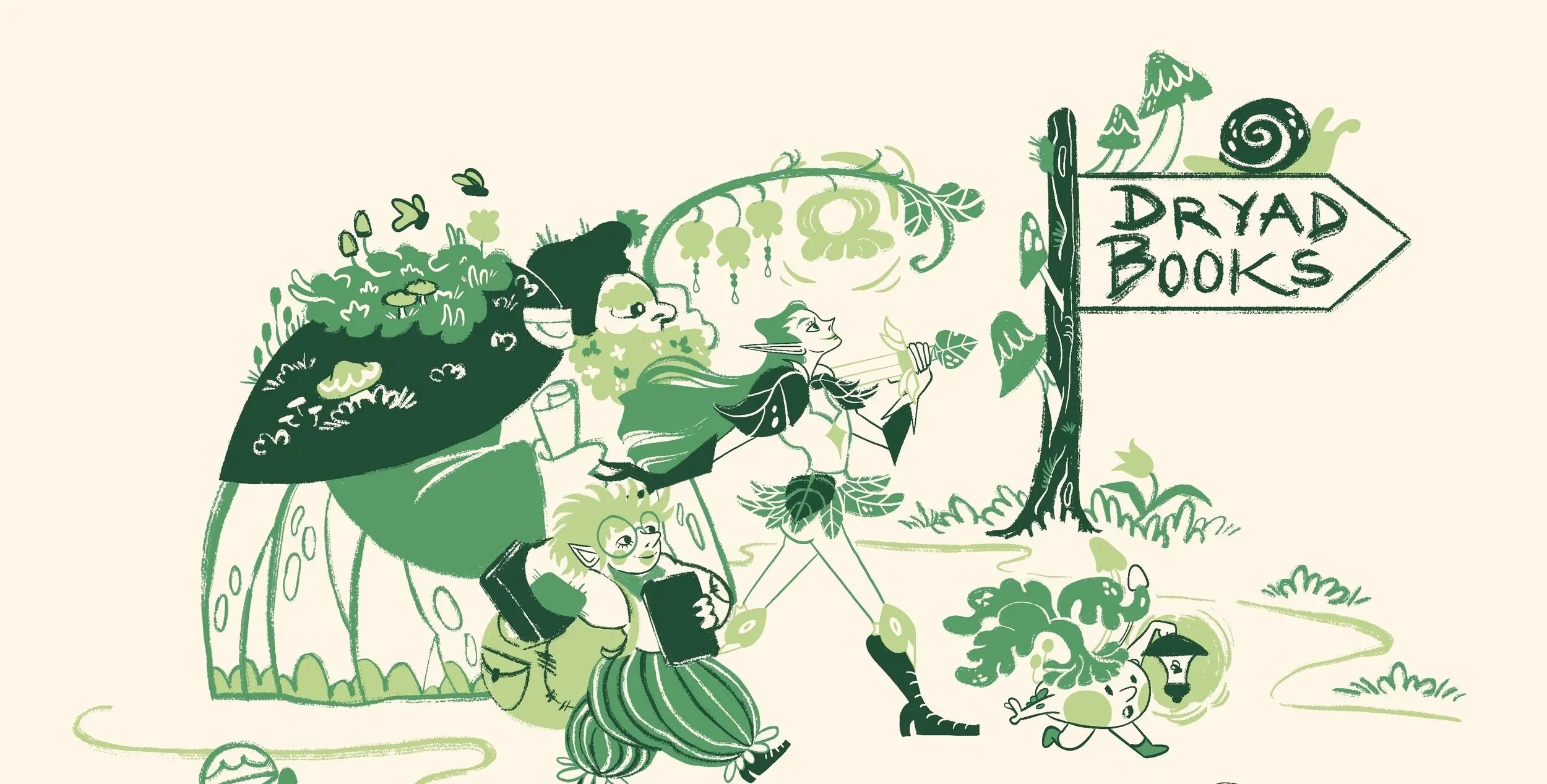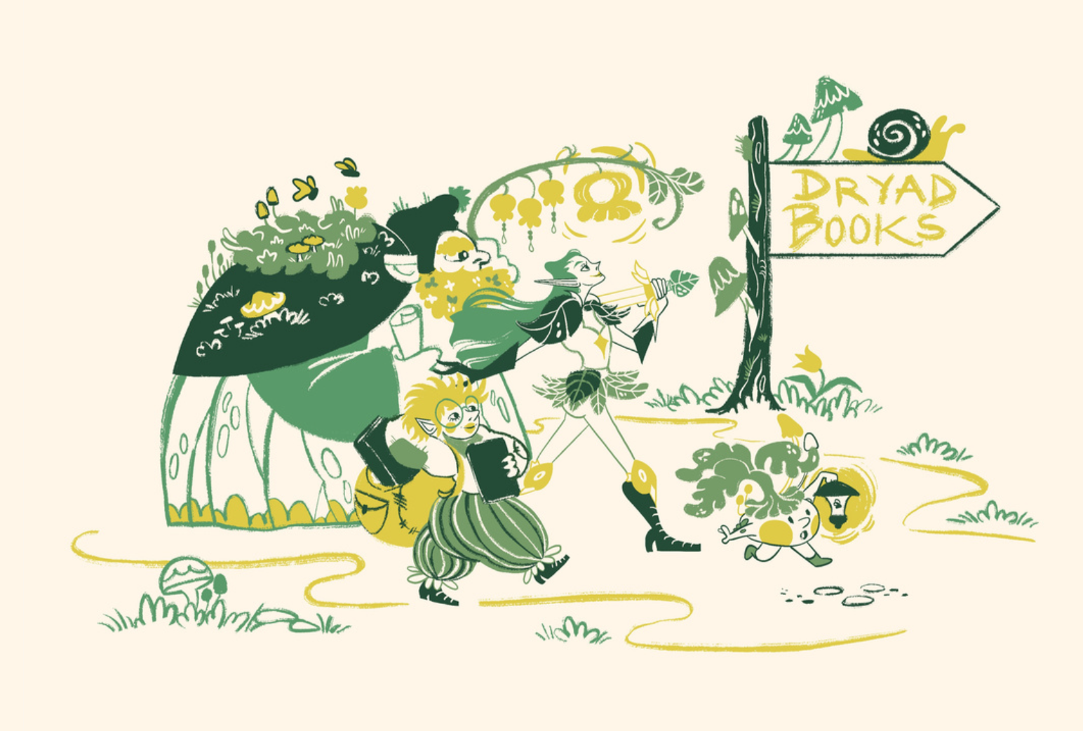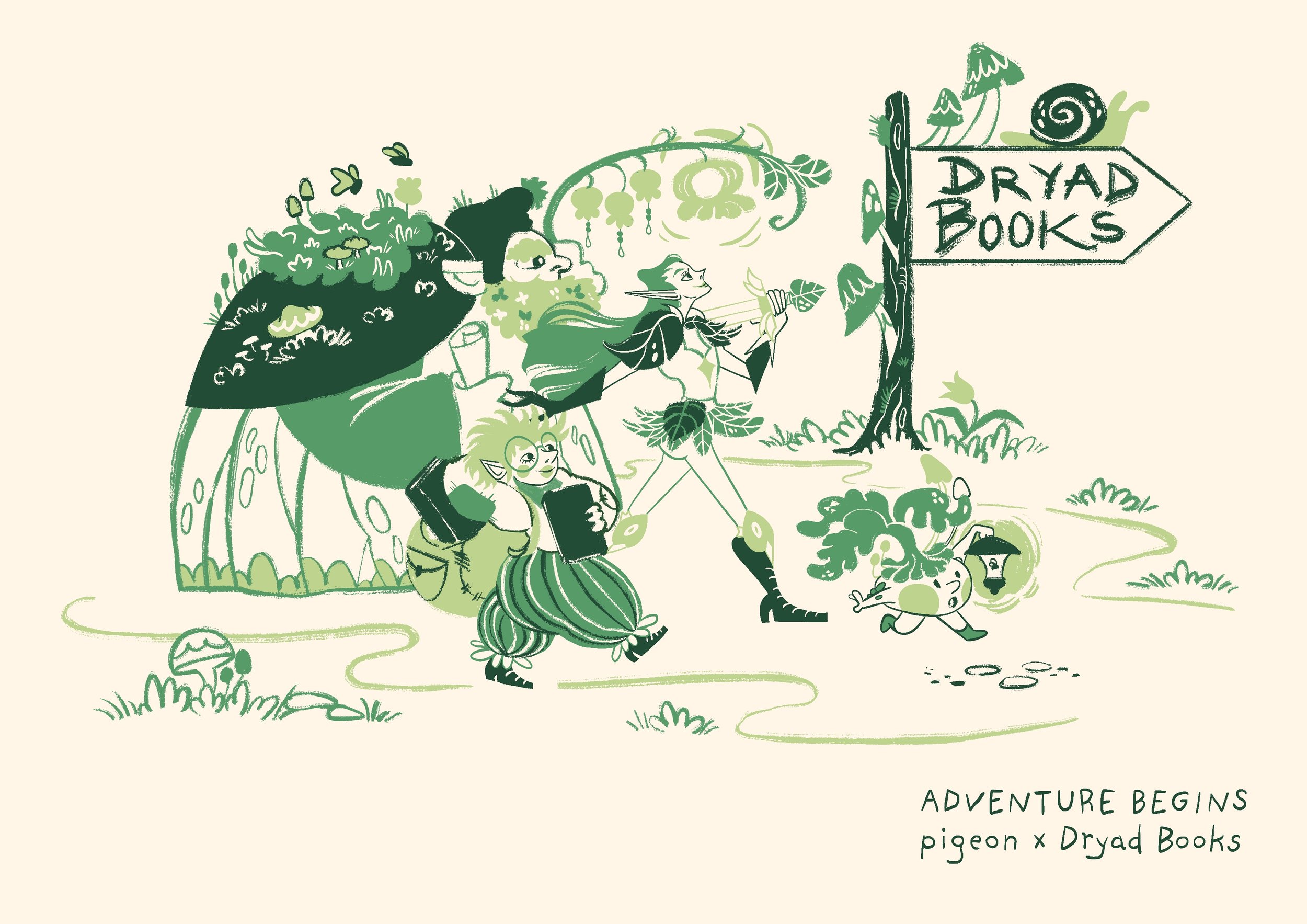 My collaboration with Dryad Books, a bookstore specialising in fantasy and speculative fiction, started in 2024 when they approached me for a new bookmark design with a whimsical character representing the shop.