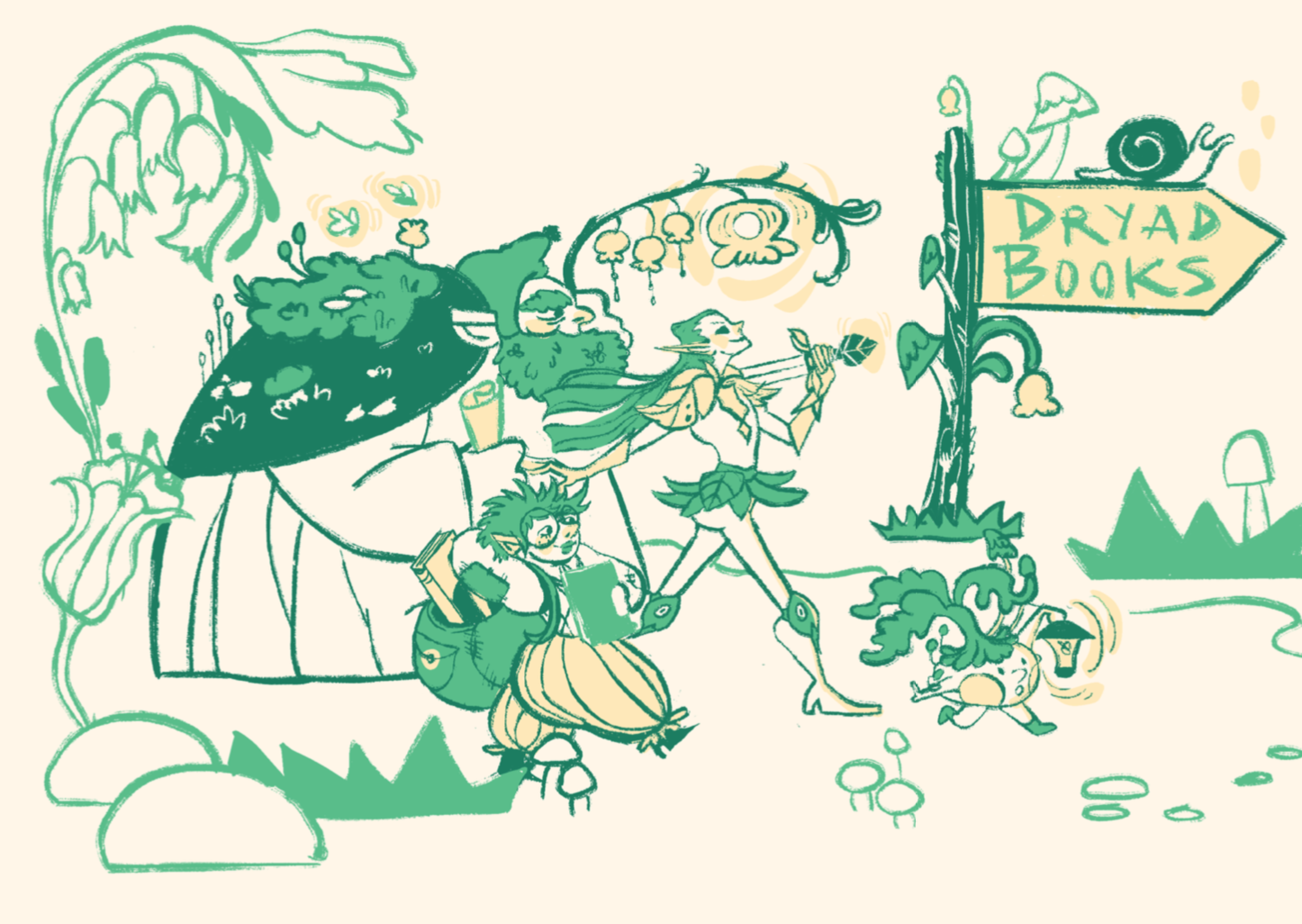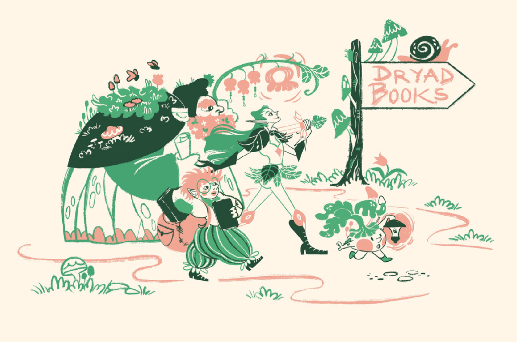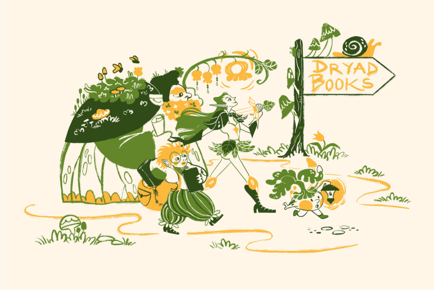 My collaboration with Dryad Books, a bookstore specialising in fantasy and speculative fiction, started in 2024 when they approached me for a new bookmark design with a whimsical character representing the shop.